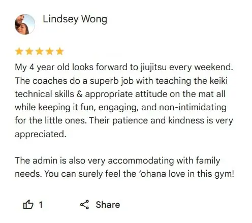 We don’t require parents to stay during classes. However, we do find that parents who get involved with their kids Brazilian Jiu-Jitsu lessons truly build a solid connection. They see their child grow in confidence and skill as they progress through their belt ranks. Building strong family units is important to us at Kahala Jiu-Jitsu for our Honolulu community.